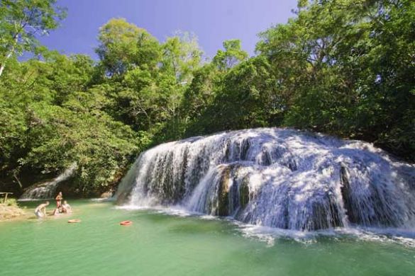 Na Estância Mimosa, o grupo realizou o passeio de trilhas e cachoeiras e aproveitaram para comentar que gostaram muito do local, acharam as cachoeiras impressionantes e que são diferentes da região onde eles moram.